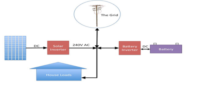 During daylight, the battery storage system is charged by clean electricity generated by solar.